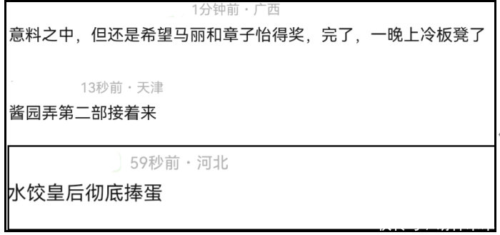 要知道章子怡和马丽不光是全程陪跑,主演电影更是奖项挂零,不管是《酱园弄》还是《水饺皇后》,都没有拿到任何奖项,可以说坐了一整晚冷板凳。